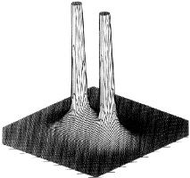 Figure 11. A relief map of the Laplacian of the electron density for the ClF3 molecule in the equatorial plane (left) and in the plane containing all four nuclei (right).